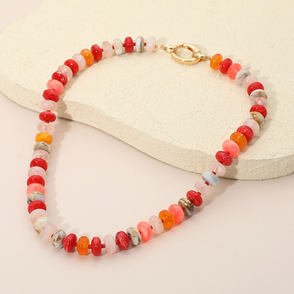 Chunky Multicolor Resin Flat Disc Beaded Necklace