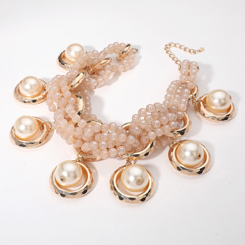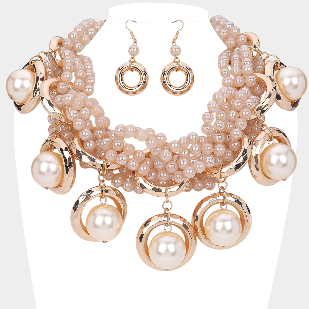 Chunky Pearl Charm Station Faceted Beaded Statement Necklace