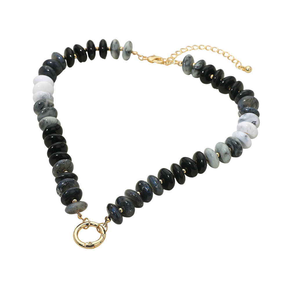• Make a bold yet refined statement with this elegant beaded necklace featuring polished round accents and a sleek clasp. Perfect for elevating casual or dressy looks, this piece adds a modern touch of artistry and sophistication to any jewelry collection.