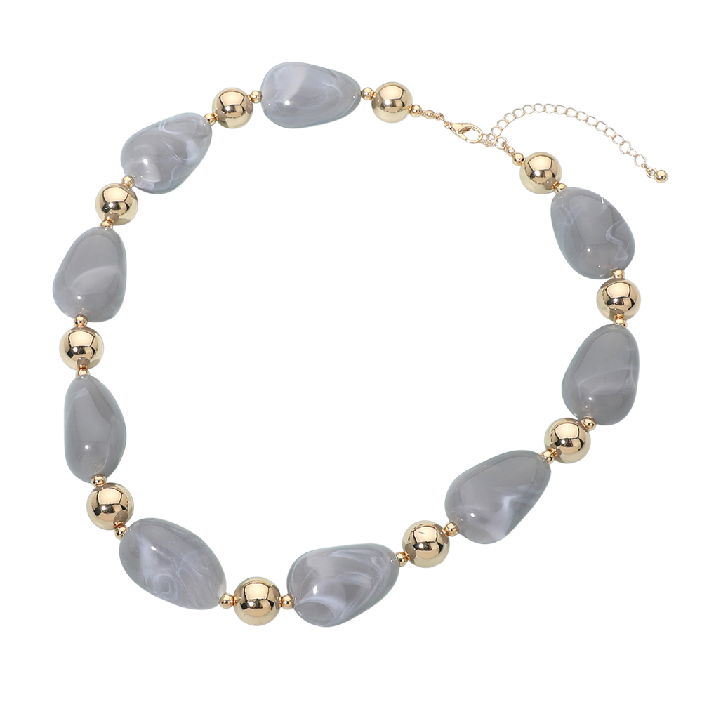 Details • Necklace Size : 18" + 3" L • Decor Size : 0.75" L • Eye-catching statement necklace designed with smooth rounded beads and polished accent spheres for balanced dimension. The structured yet fluid silhouette makes it easy to style with casual looks or elevated outfits, offering a refined focal point that enhances layering or stands out beautifully on its own. • Lead and Nickel Compliant