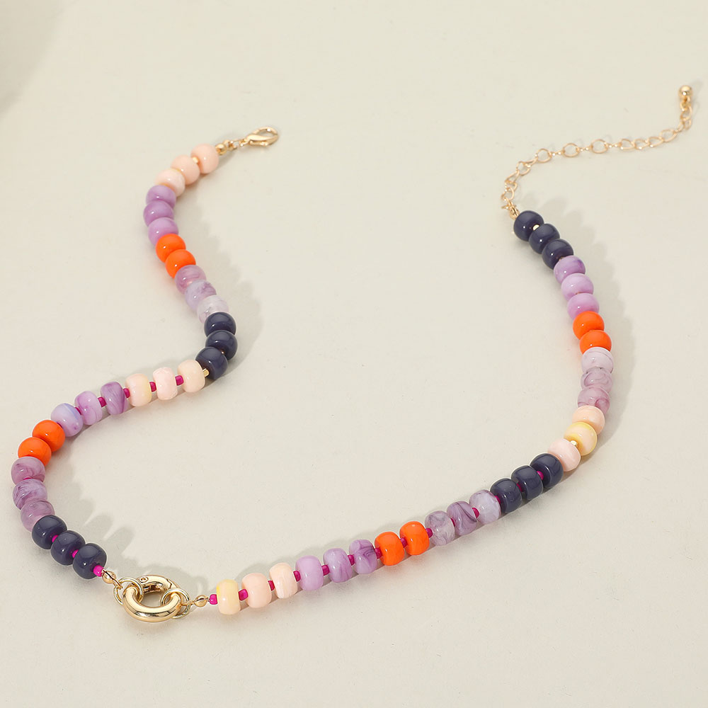 Details • Necklace Size : 16.5" + 3.5" L • Decor Size : 0.5" L • Stylish beaded necklace featuring smooth round disc beads with a secure clasp and adjustable chain. Lightweight and perfect for casual layering or summer-inspired looks. • Lead and Nickel Compliant