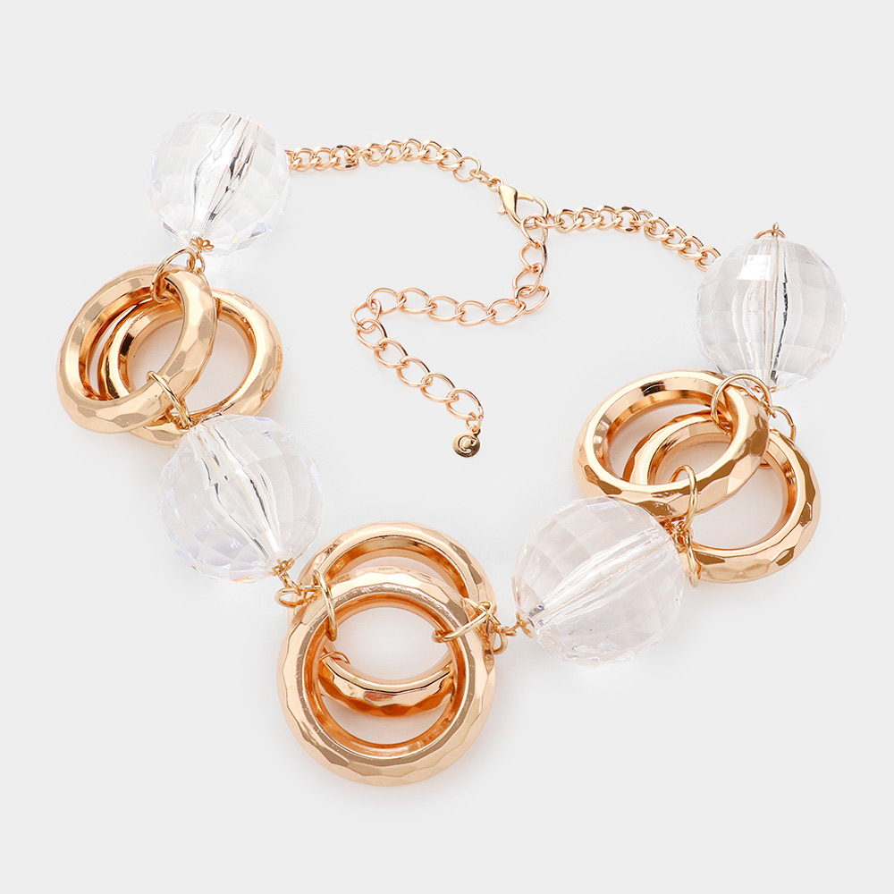 Clear Disco Ball Open Circle Metal Link Statement Necklace