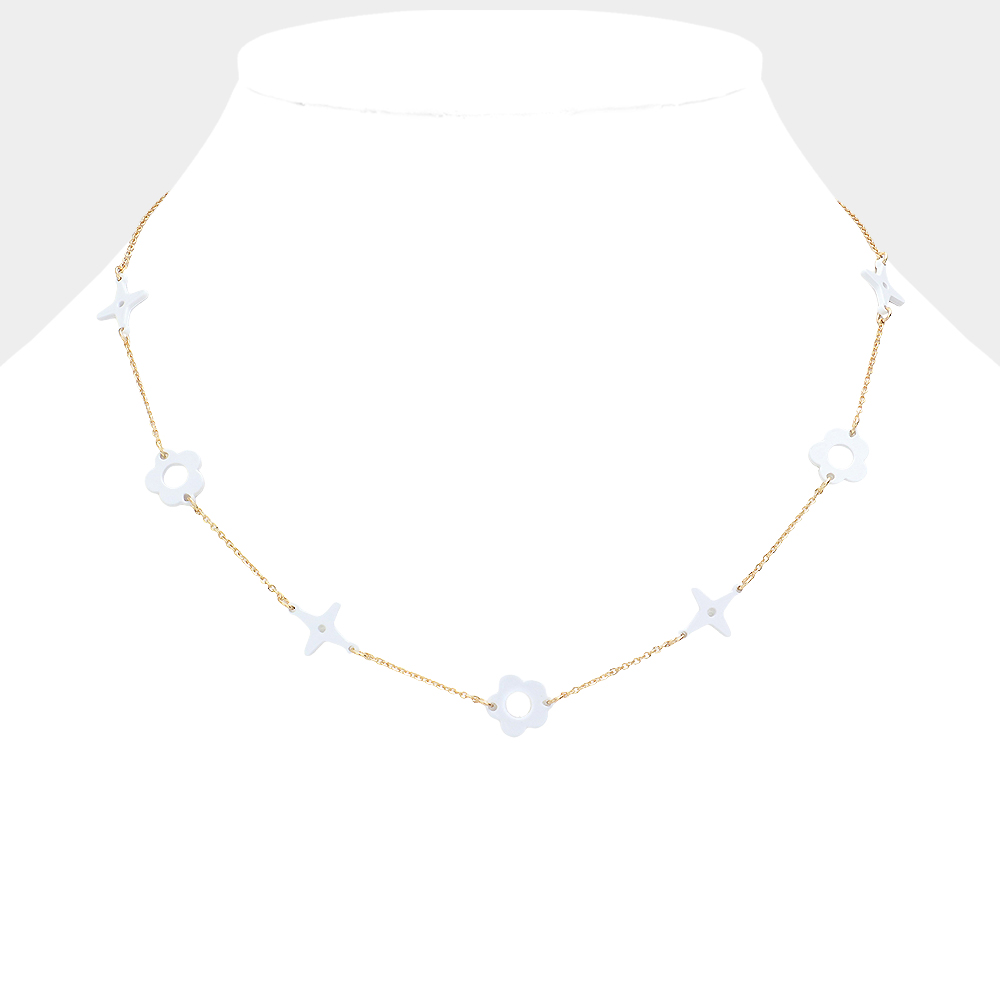 Leaf Vine Pointed Abalone Cross Pendant Necklace