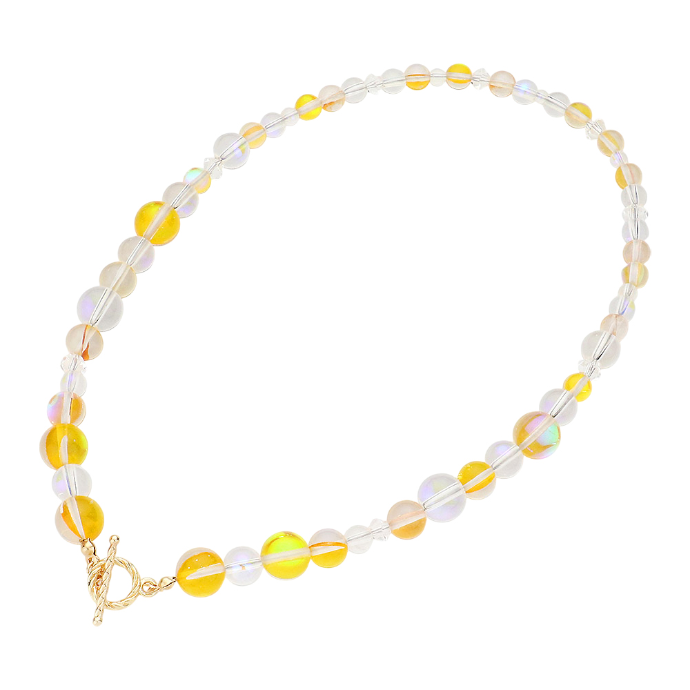 Polished Metal Bean Accent Bold Marbled Ball Beaded Statement Necklace
