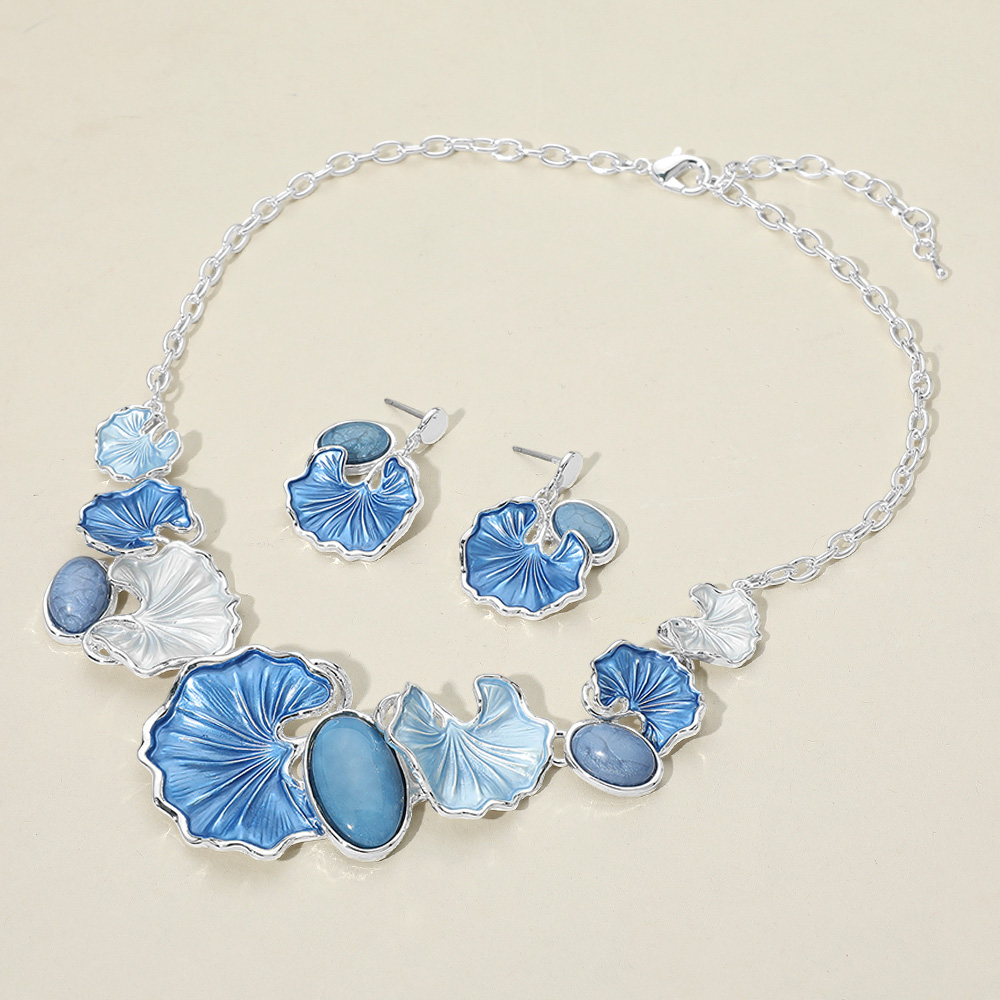 Colored Metal Gingko Leaves Vine Statement Necklace