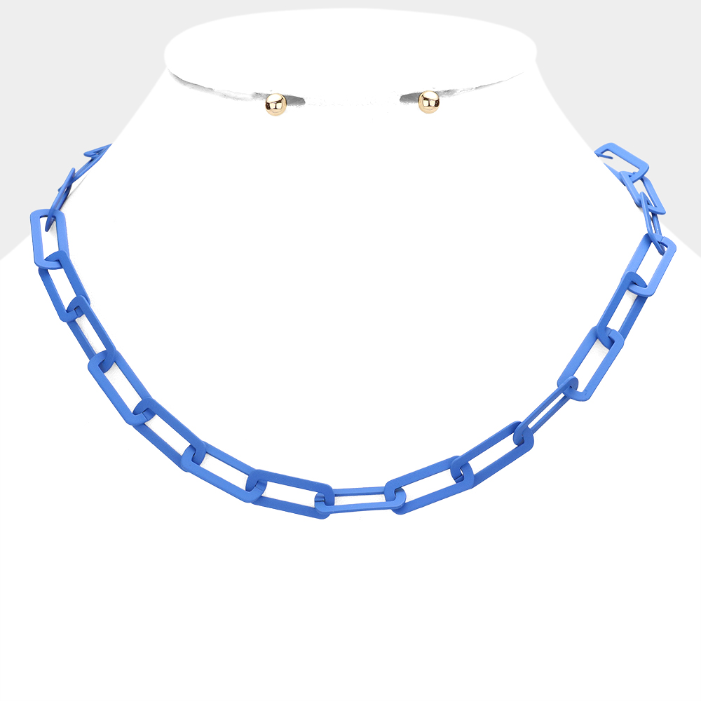14K Gold Plated Two Tone CZ Stone Paved Ring Link Necklace