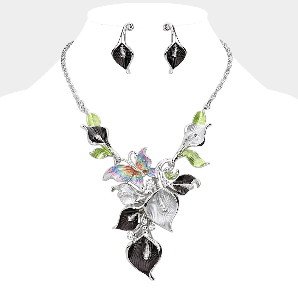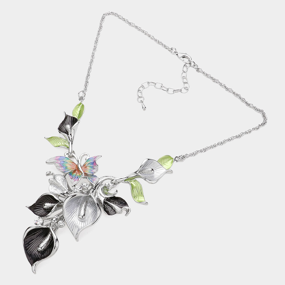 Abalone Embossed Metal Dragonfly Pendant Necklace
