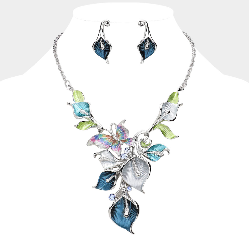 Felt Back Sequin Triple Butterfly Link Dangle Earrings