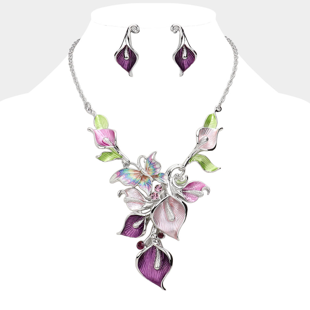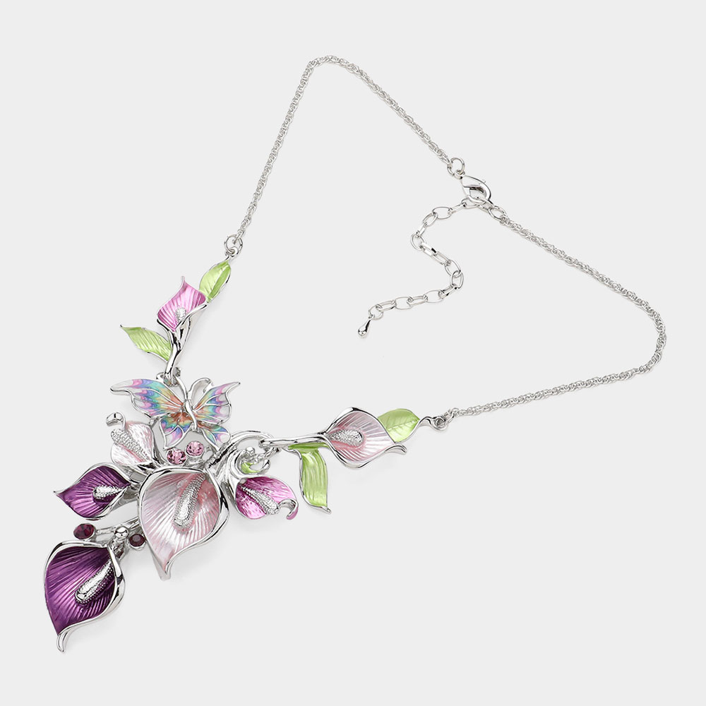 Marquise Stone Cluster Butterfly Drop Accent Rhinestone Paved Necklace