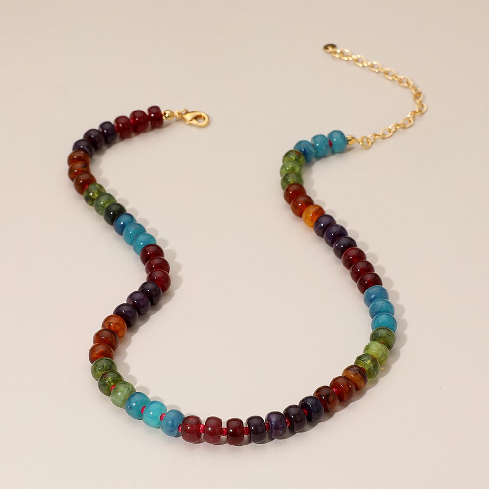 Details • Necklace Size : 16" + 3" L • Decor Size : 0.3" L • Playful beaded necklace designed with vibrant round beads for a bold and trendy look. Perfect for layering or wearing solo, this fun accessory adds a cheerful statement to casual outfits, summer styles, or festival wear. A versatile necklace that brings personality and charm to everyday fashion. • Lead and Nickel Compliant