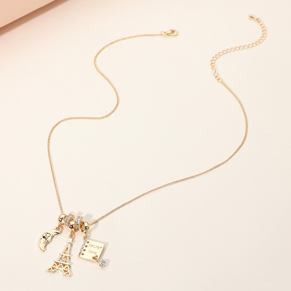 Crescent Moon Eiffel Tower Secret Love Book Charm Beaded Necklace