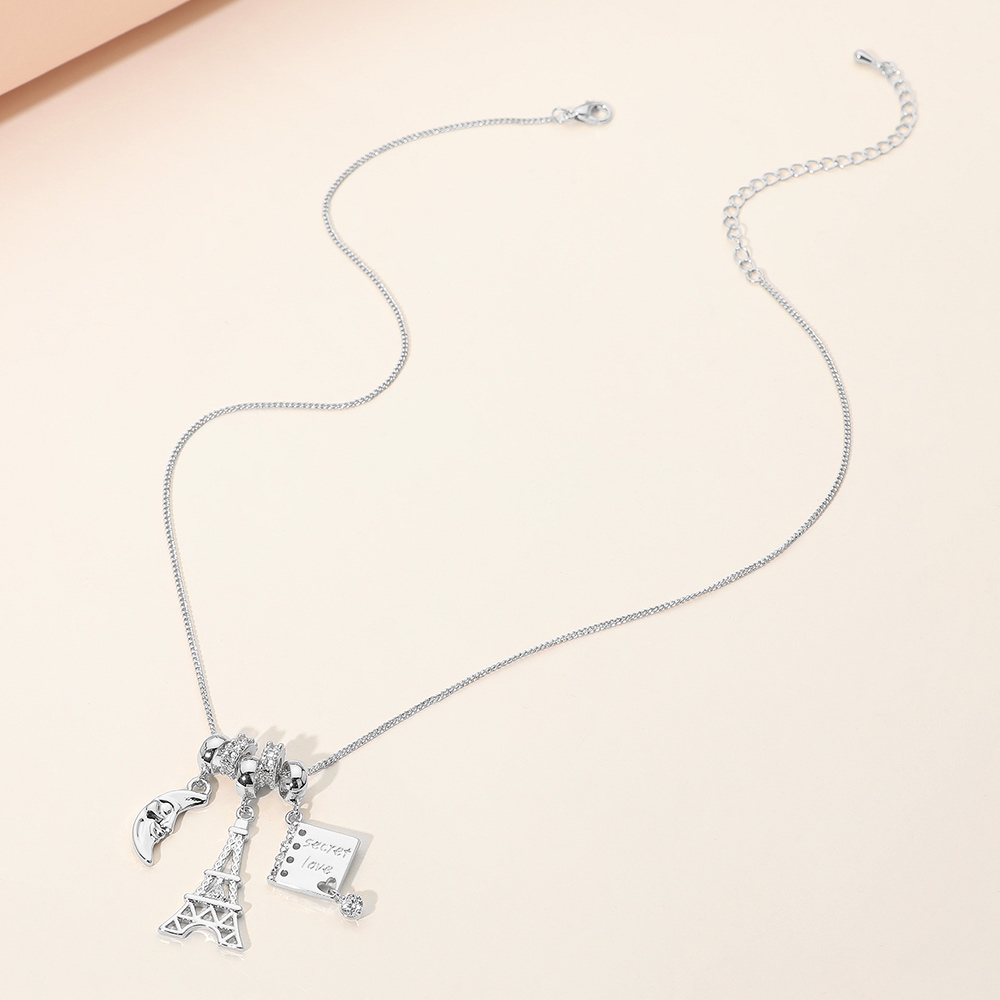Crescent Moon Eiffel Tower Secret Love Book Charm Beaded Necklace