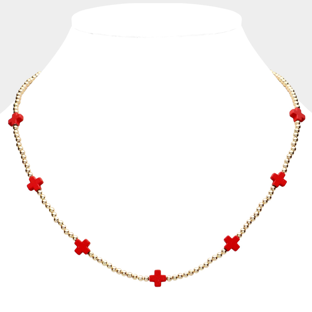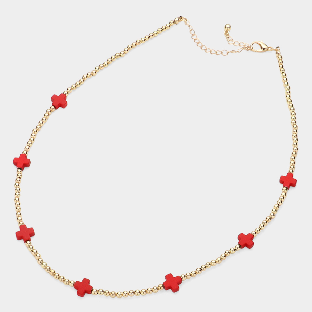 Cross Pointed Metal Ball Beaded Necklace