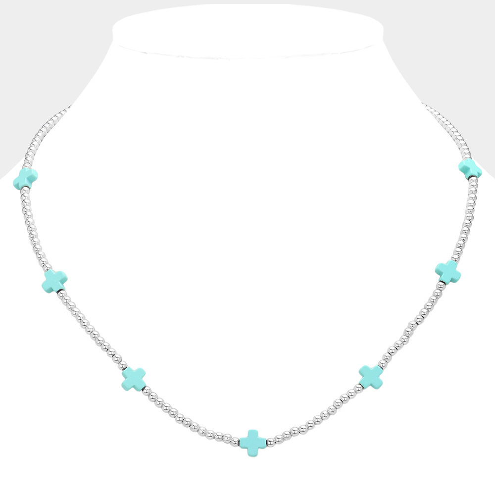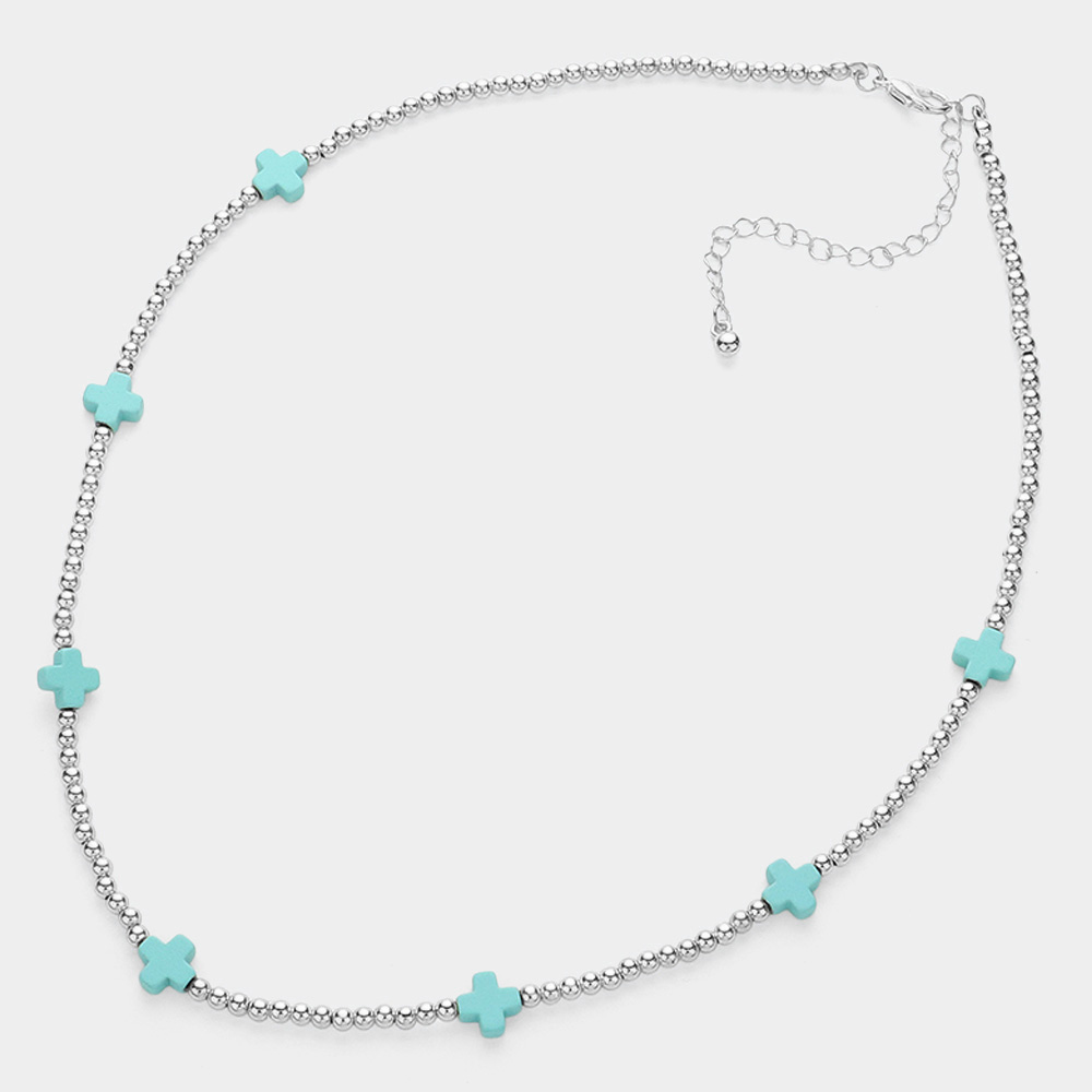 CZ Stone Pointed Cross Pendant Faceted Beaded Cinch Pull Tie Bracelet
