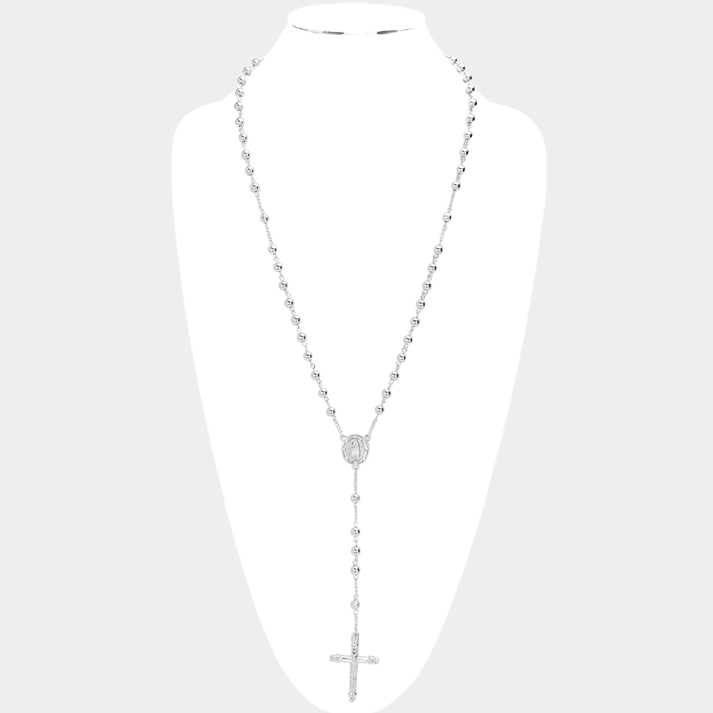 Metal Ball Cross Pendant Seed Beaded Double Layered Necklace