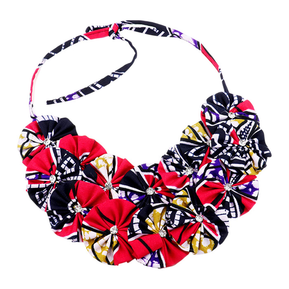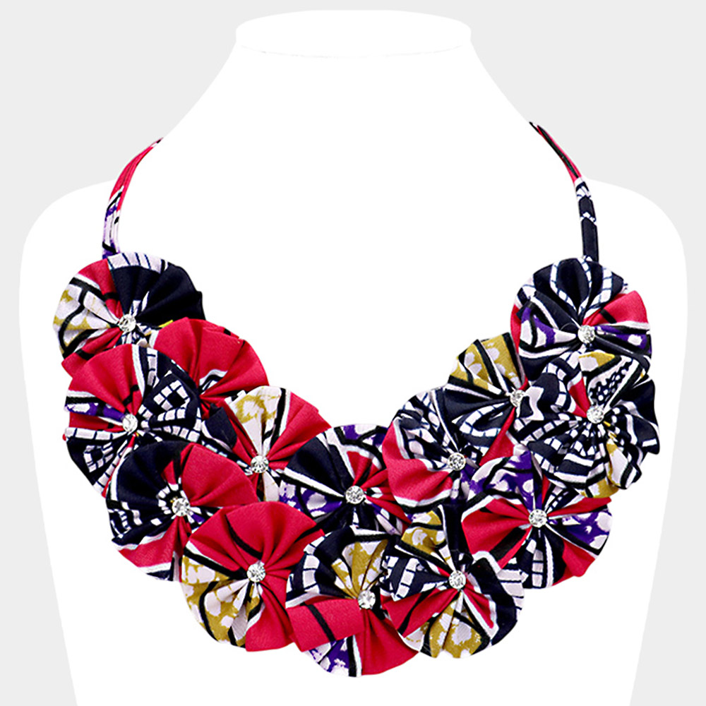 Crystal Centered Fabric Round Cluster Collar Necklace