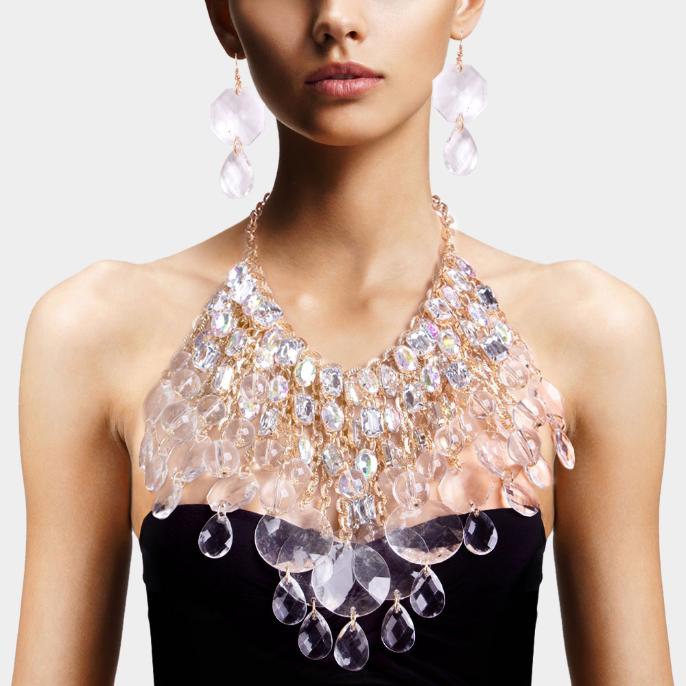 Marquise Stone Pendant Rhinestone Paved Necklace
