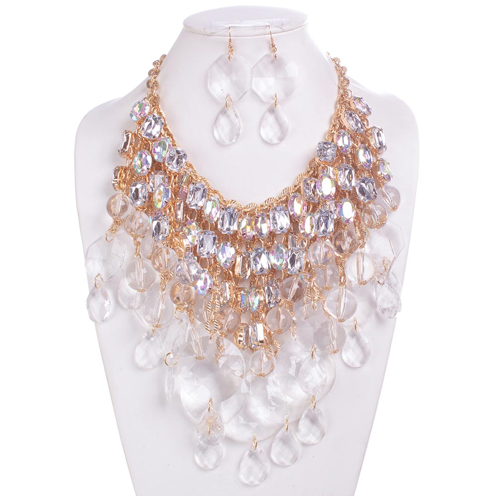 CZ Stone Teardrop Pendant Pointed Rhinestone Necklace