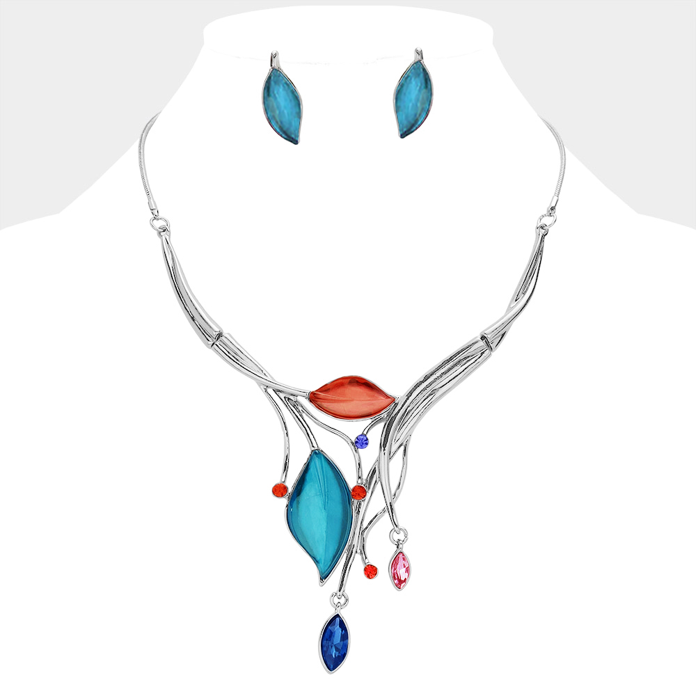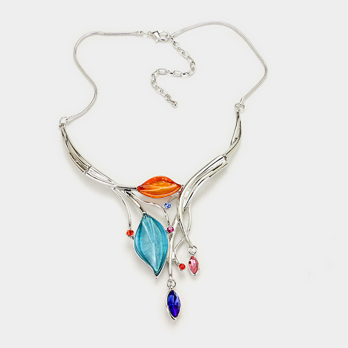 Flower Stone Cluster Pointed Glass Stone Embellished Leaf Pin Brooch