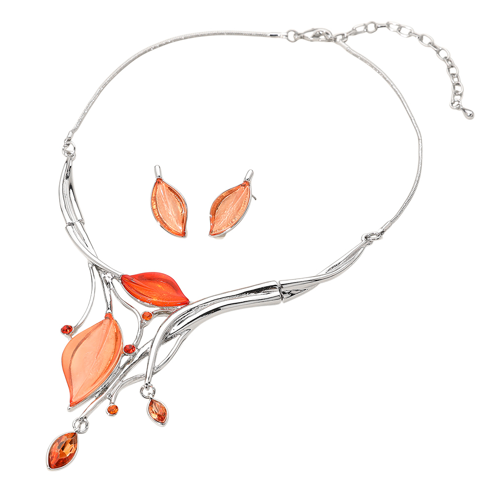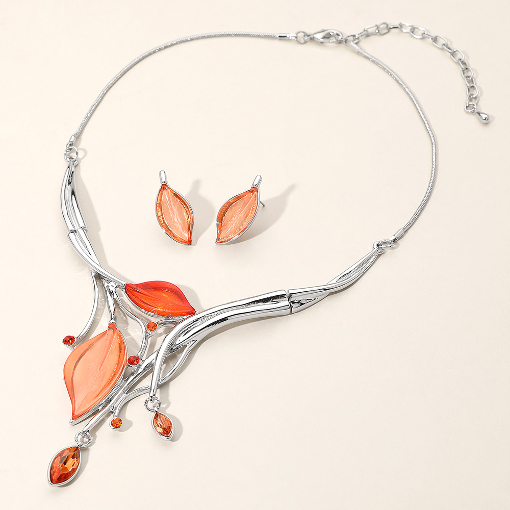 Marquise Stone Cluster Pearl Embellished Leaf Branch Necklace