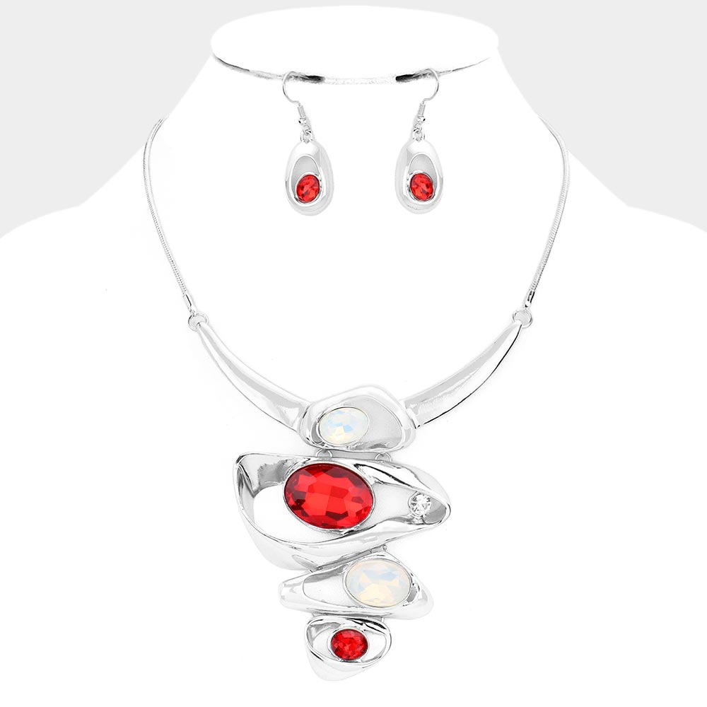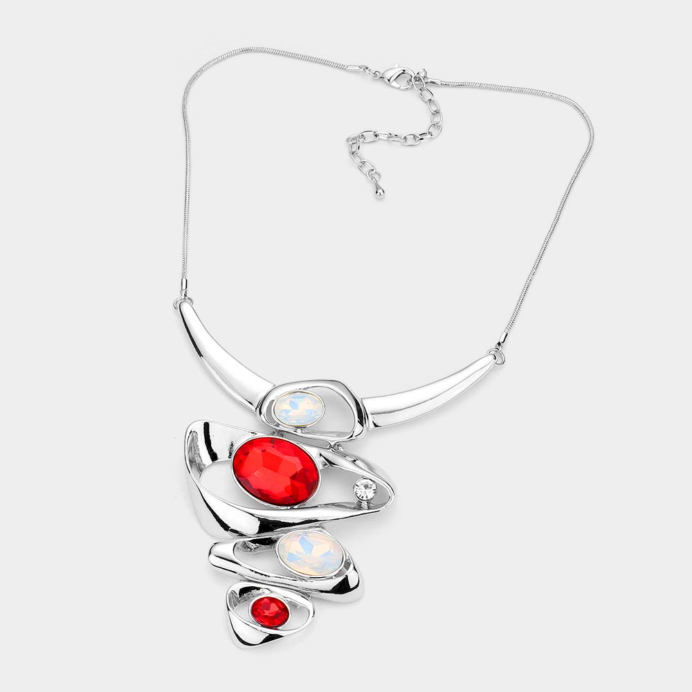 Marquise Stone Cluster Pearl Embellished Leaf Branch Necklace