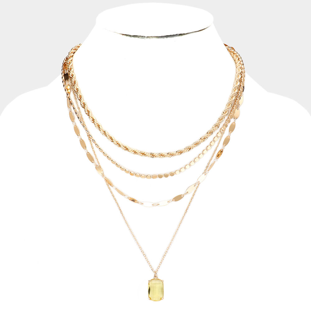Cushion Cut Pendant Multi Layered Necklace