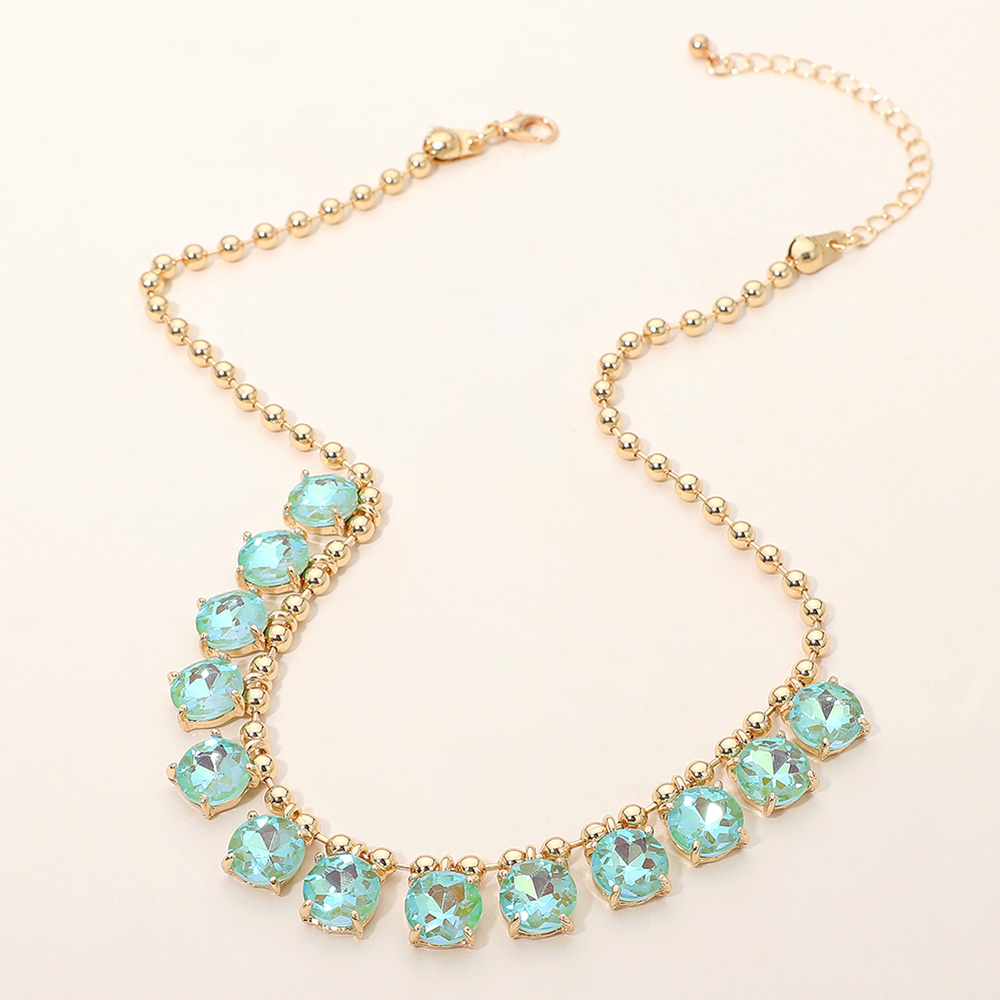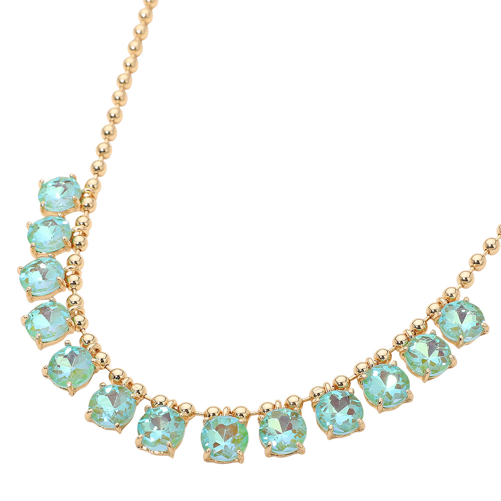 • Elegant necklace featuring a delicate beaded chain accented with faceted round stones arranged along the neckline. Designed to add refined sparkle and balanced detail, this versatile piece suits everyday wear, special occasions, gifting, and boutique collections with a timeless, polished appeal.