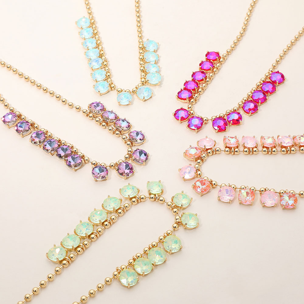 • Elegant necklace featuring a delicate beaded chain accented with faceted round stones arranged along the neckline. Designed to add refined sparkle and balanced detail, this versatile piece suits everyday wear, special occasions, gifting, and boutique collections with a timeless, polished appeal.