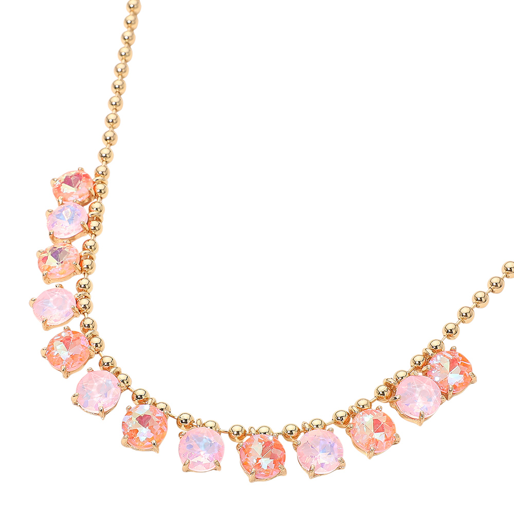 • Elegant necklace featuring a delicate beaded chain accented with faceted round stones arranged along the neckline. Designed to add refined sparkle and balanced detail, this versatile piece suits everyday wear, special occasions, gifting, and boutique collections with a timeless, polished appeal.