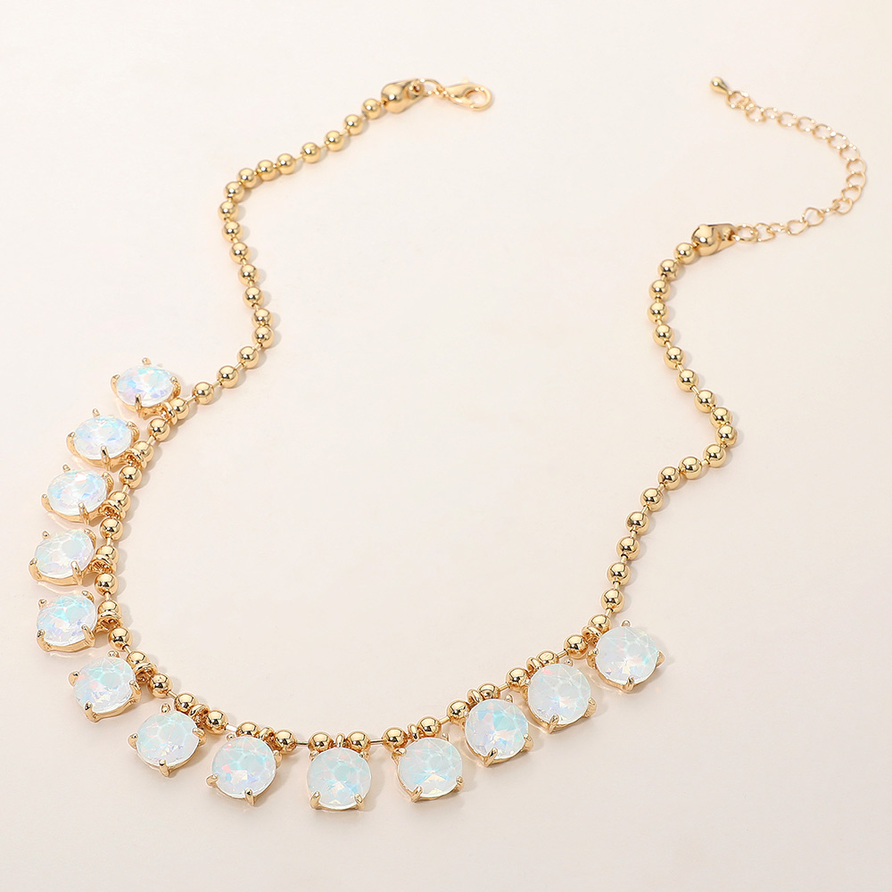 • Elegant necklace featuring a delicate beaded chain accented with faceted round stones arranged along the neckline. Designed to add refined sparkle and balanced detail, this versatile piece suits everyday wear, special occasions, gifting, and boutique collections with a timeless, polished appeal.