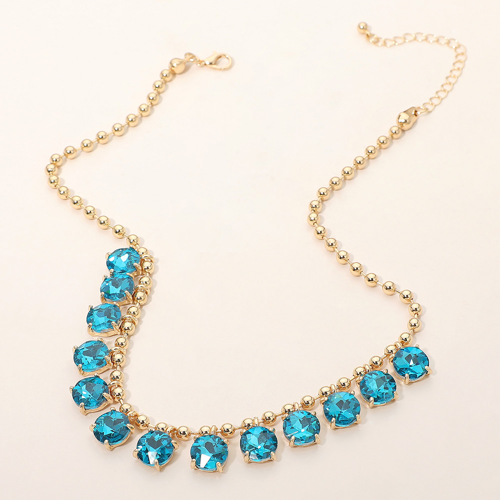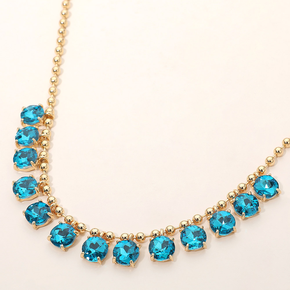 • Elegant necklace featuring a delicate beaded chain accented with faceted round stones arranged along the neckline. Designed to add refined sparkle and balanced detail, this versatile piece suits everyday wear, special occasions, gifting, and boutique collections with a timeless, polished appeal.