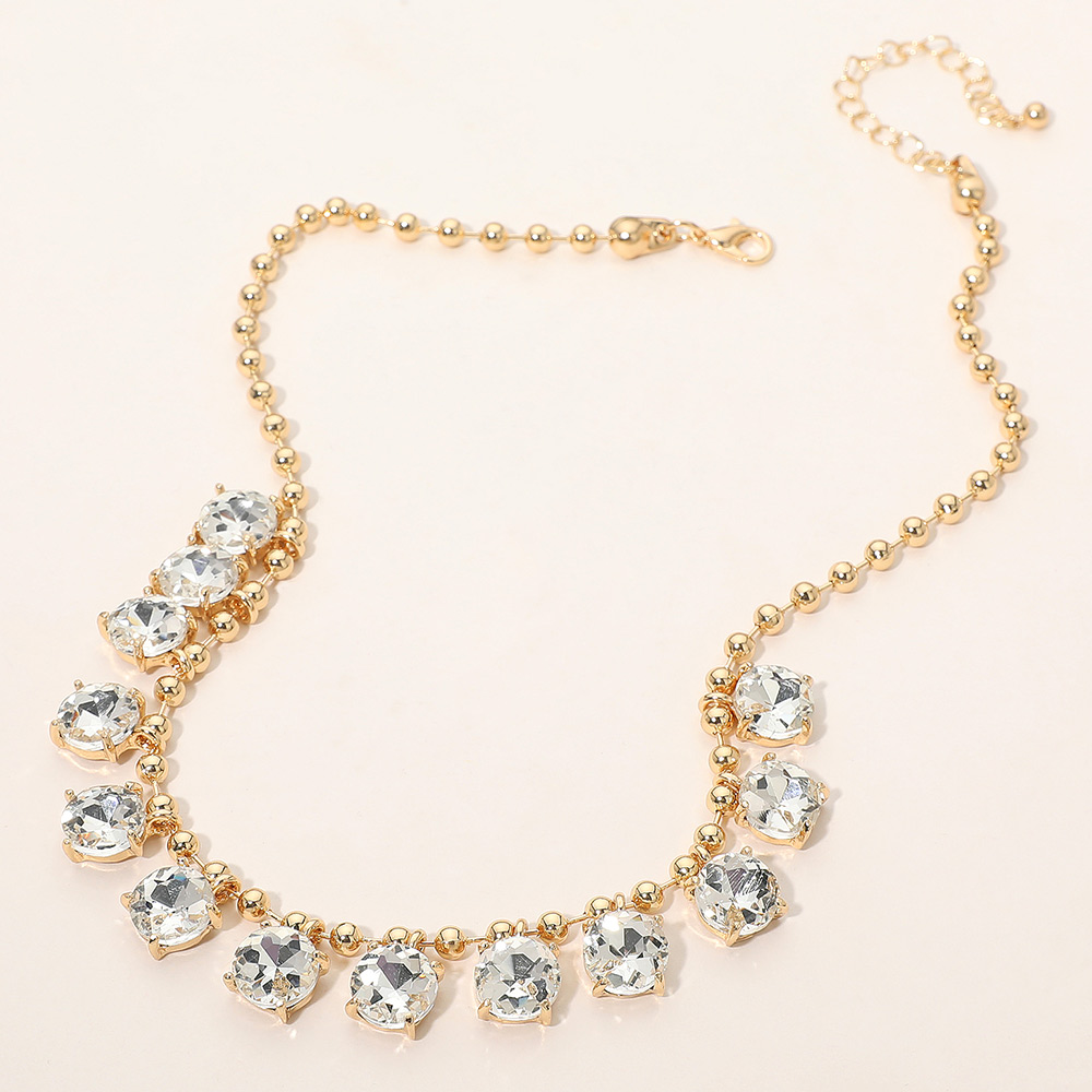 • Elegant necklace featuring a delicate beaded chain accented with faceted round stones arranged along the neckline. Designed to add refined sparkle and balanced detail, this versatile piece suits everyday wear, special occasions, gifting, and boutique collections with a timeless, polished appeal.