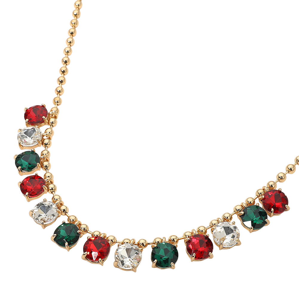 • Elegant necklace featuring a delicate beaded chain accented with faceted round stones arranged along the neckline. Designed to add refined sparkle and balanced detail, this versatile piece suits everyday wear, special occasions, gifting, and boutique collections with a timeless, polished appeal.