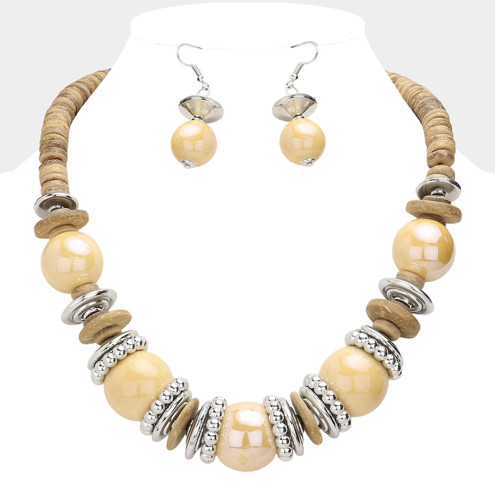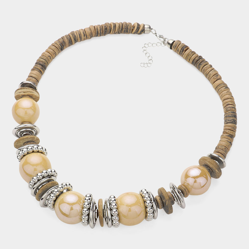 Wood Pointed Hammered Metal Curved Bib Necklace