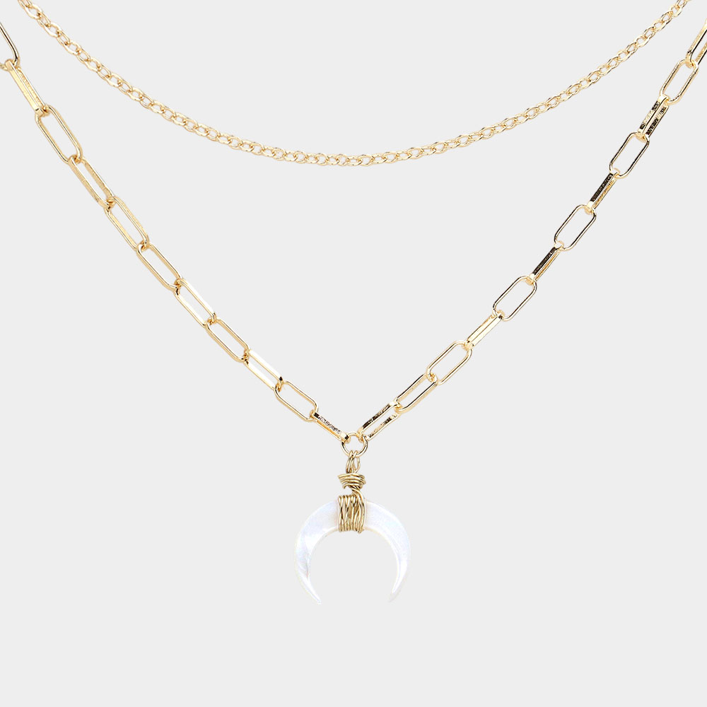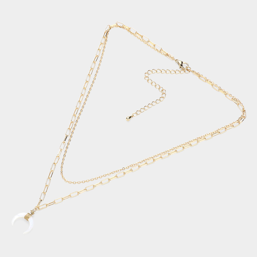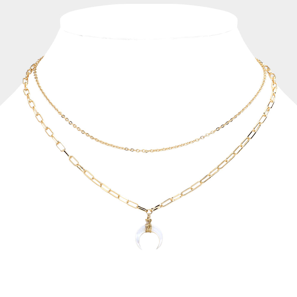 Chunky Glass Stone Tweed Covered Stone Layered Statement Necklace