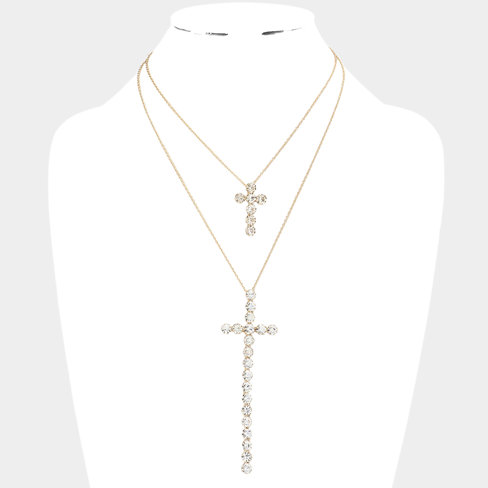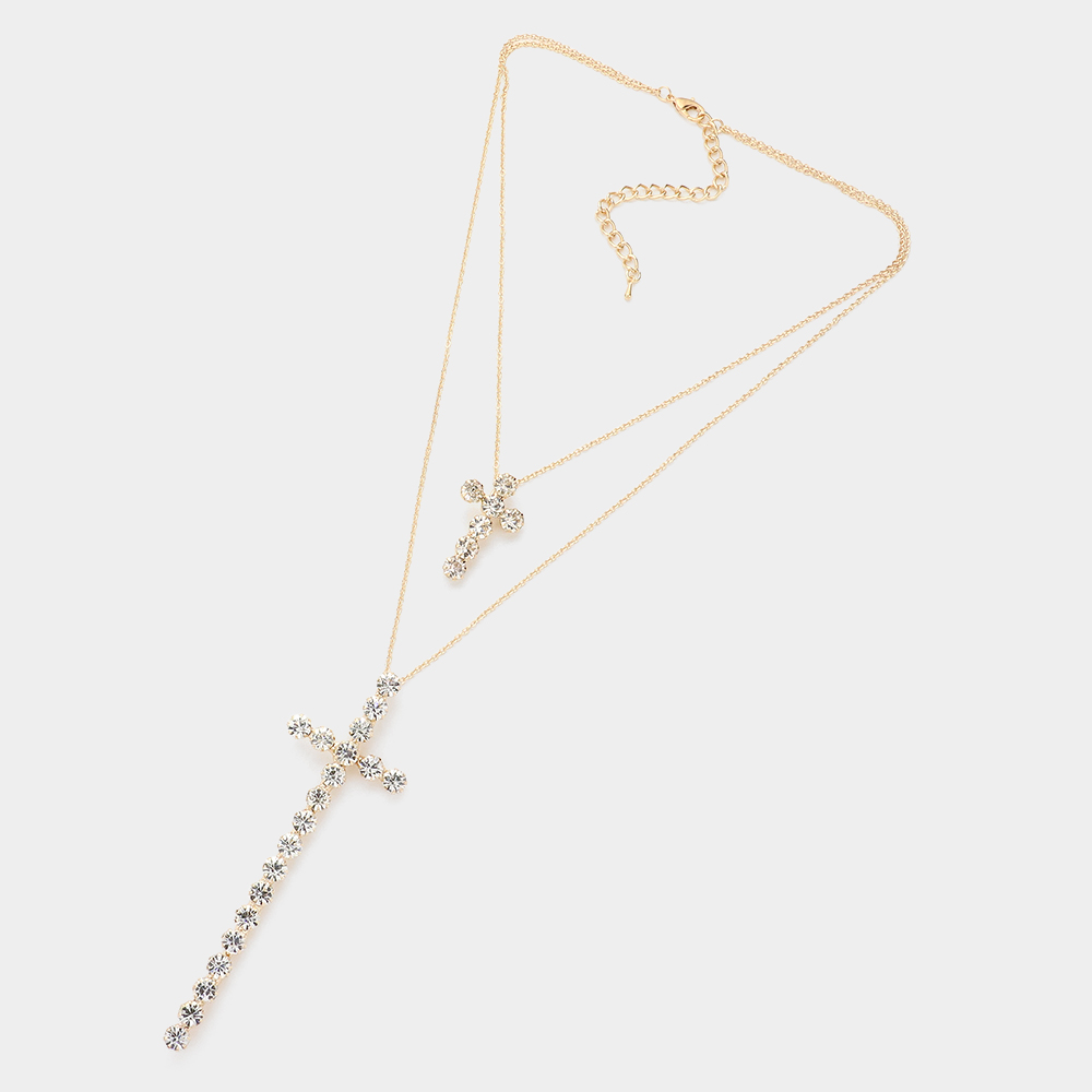 Double Layered Crystal Cross Pendant Necklace