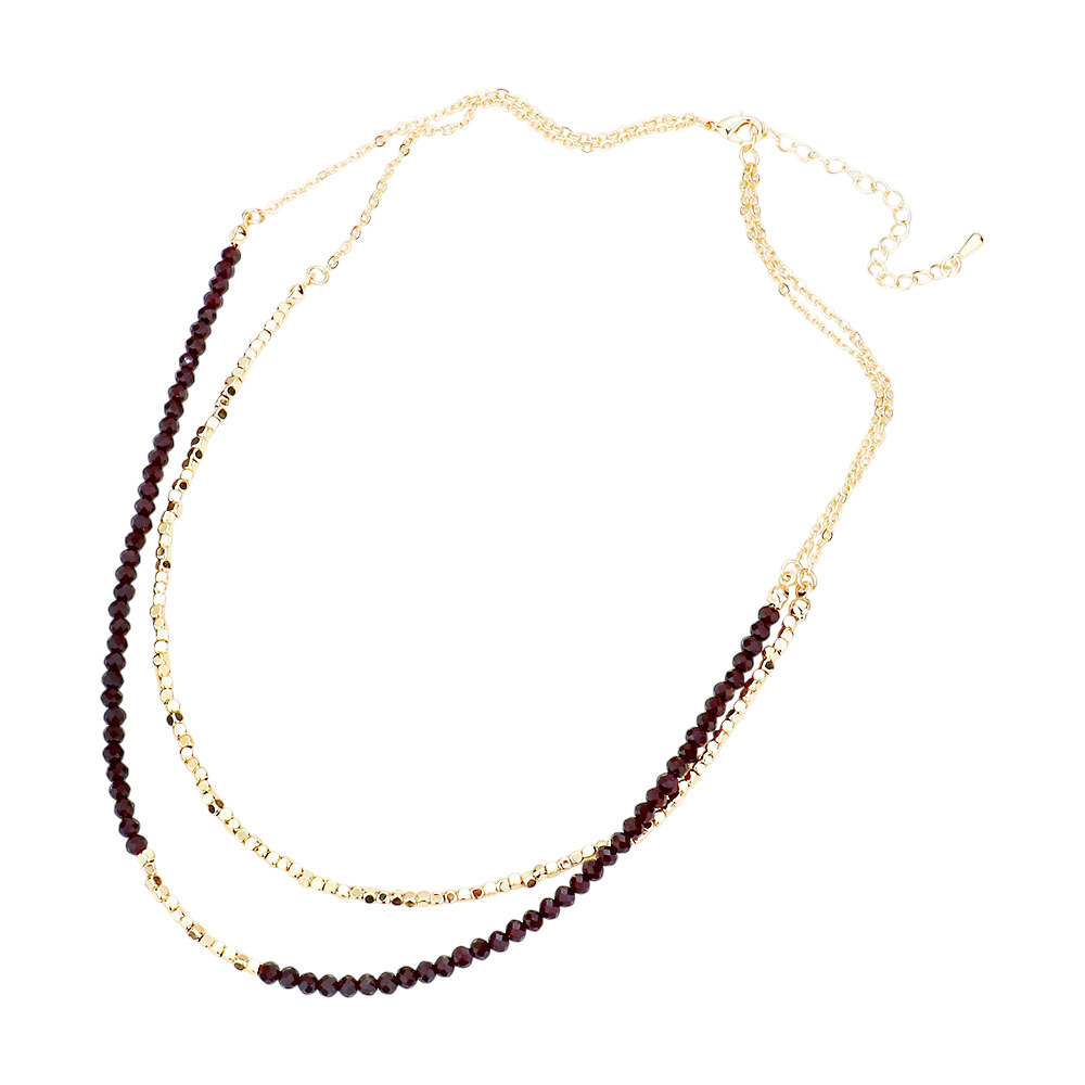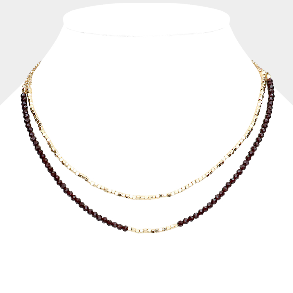 Double Layered Metal Cube Faceted Beaded Necklace