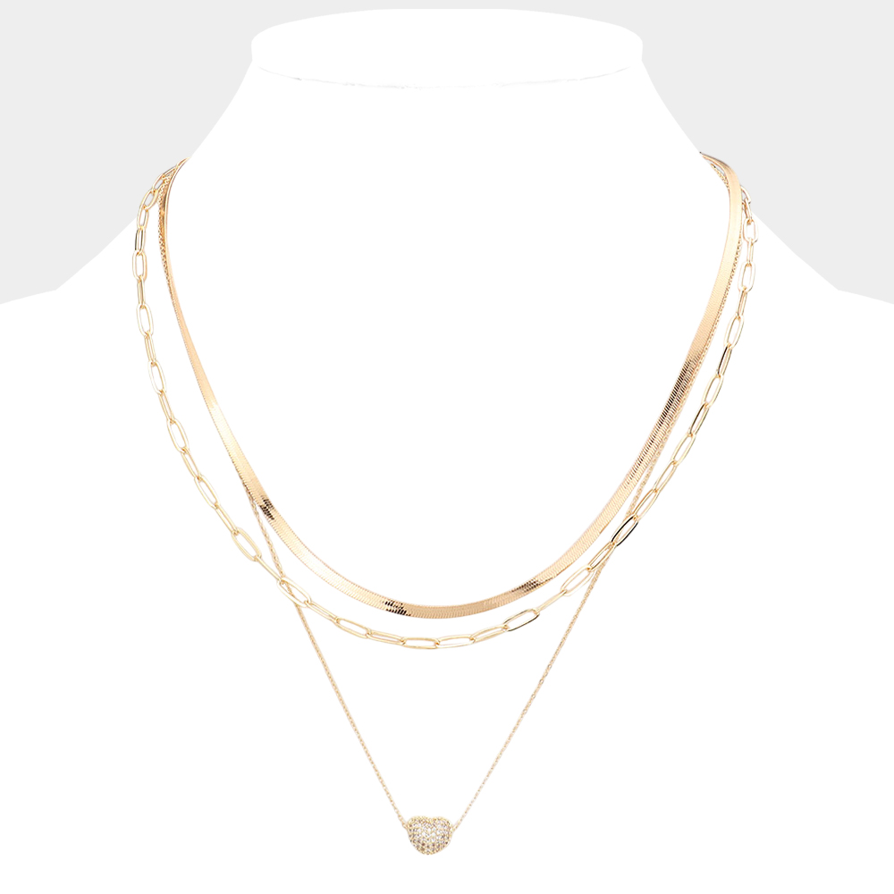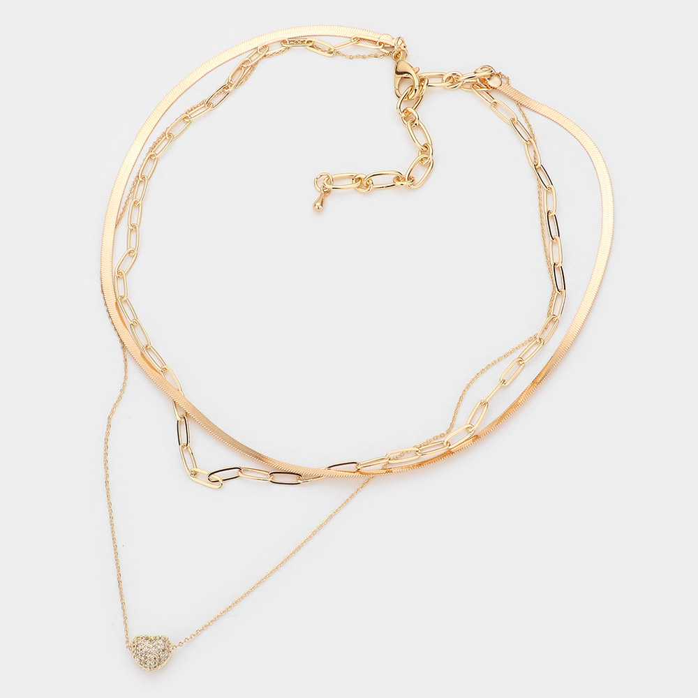 Double Layered Rhinestone Pave Heart Pendant Necklace