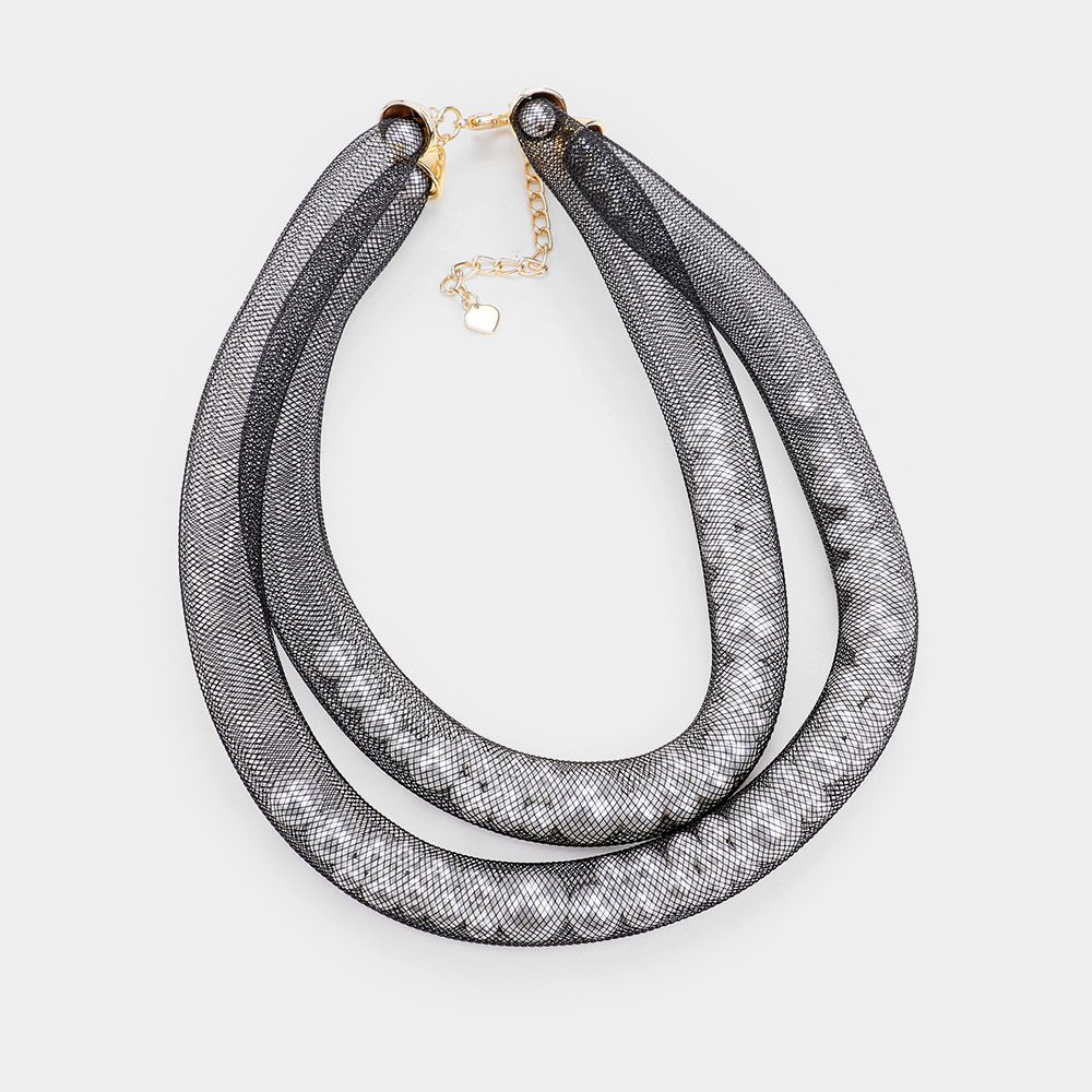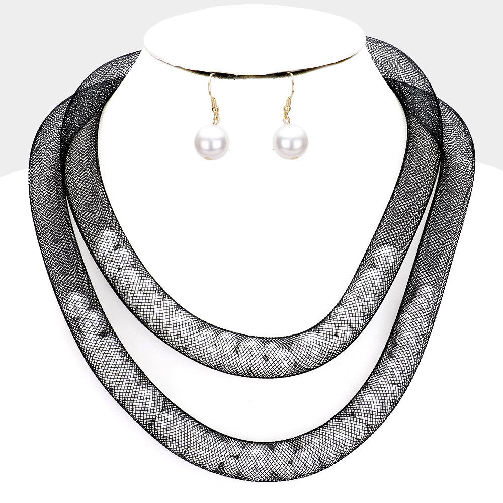 Pearl Accented Triple Layered Mesh Bib Necklace