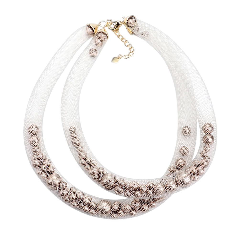 Pearl Accented Triple Layered Mesh Bib Necklace