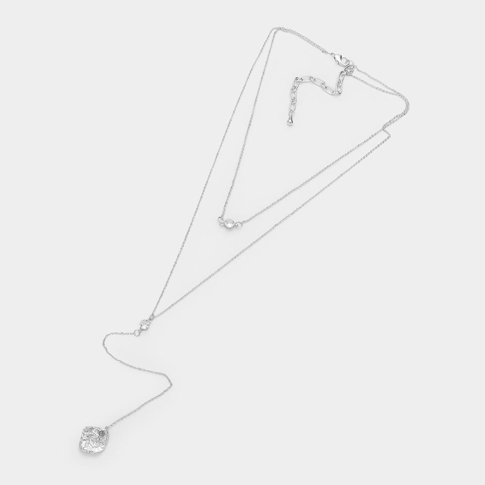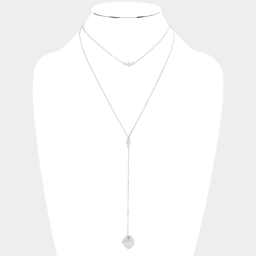 Brass Metal Rhinestone Embellished Bar Pendant Y Necklace