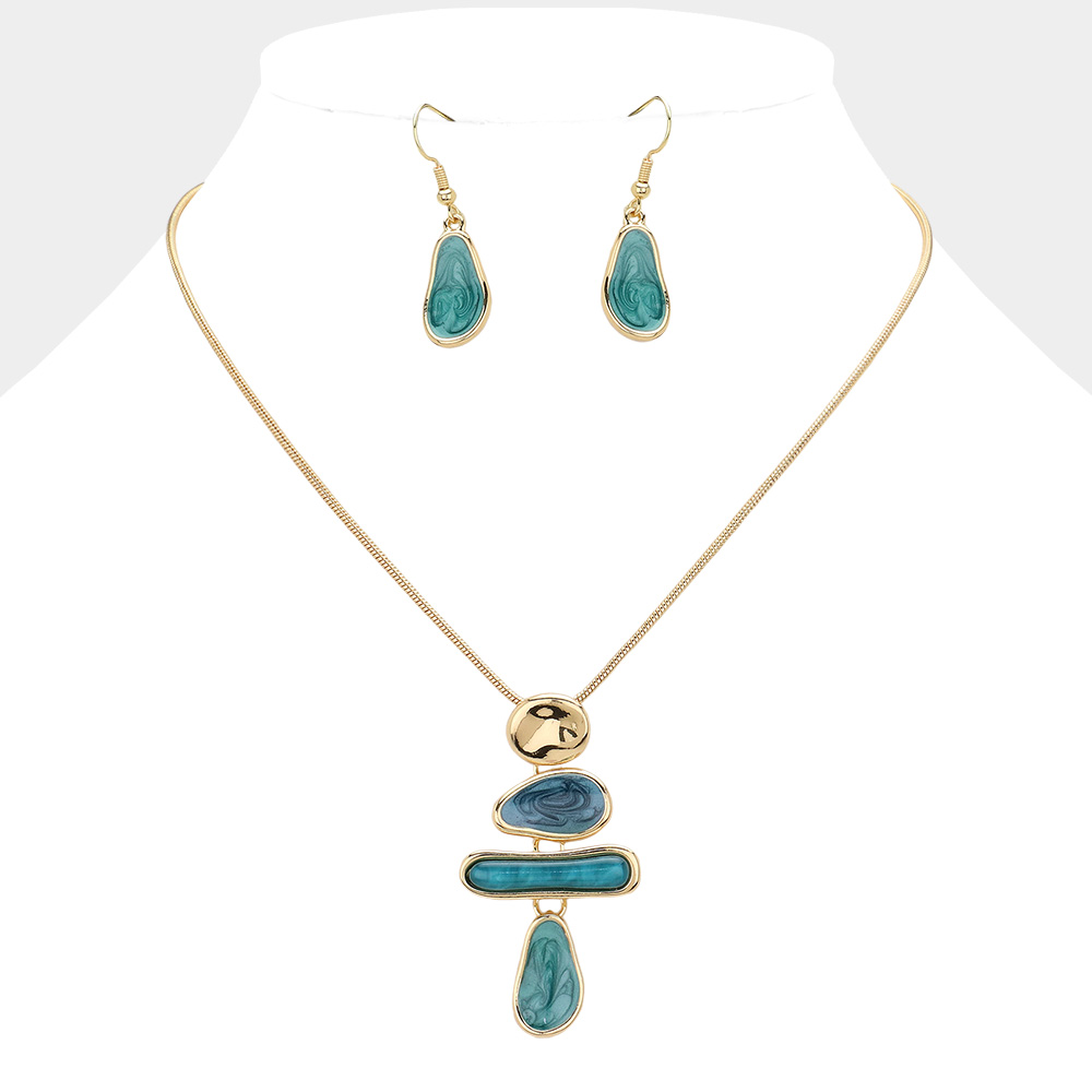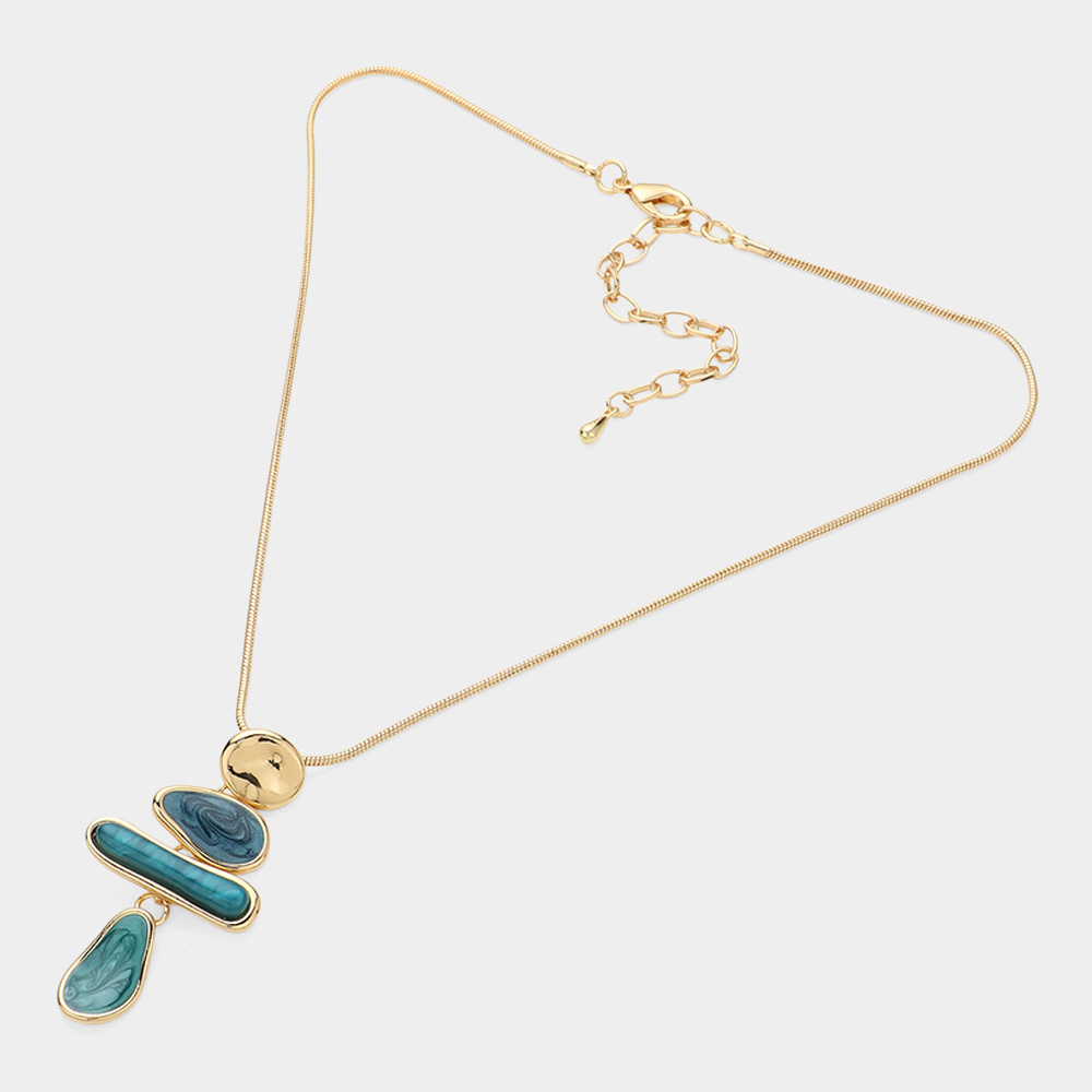 Enamel Abstract Pebble Plate Metal Disc Link Pendant Necklace