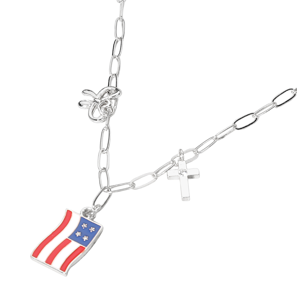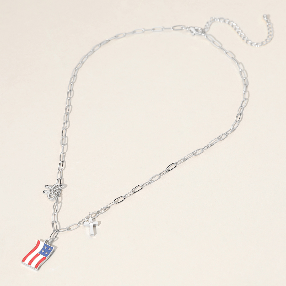 Enamel American USA Flag Metal Cross Bow Charm Station Paperclip Chain Necklace