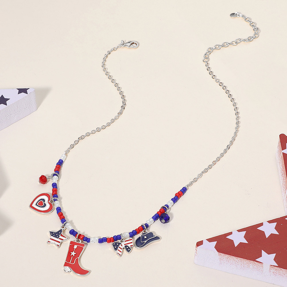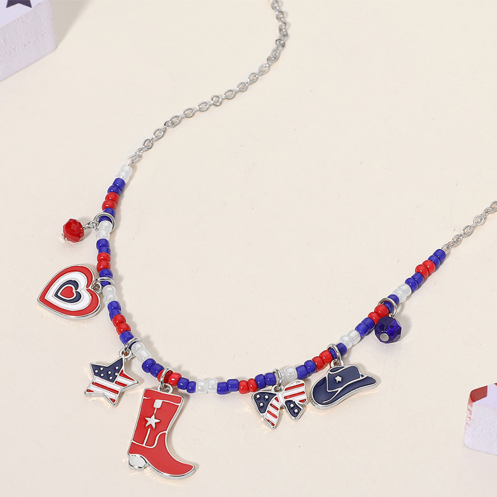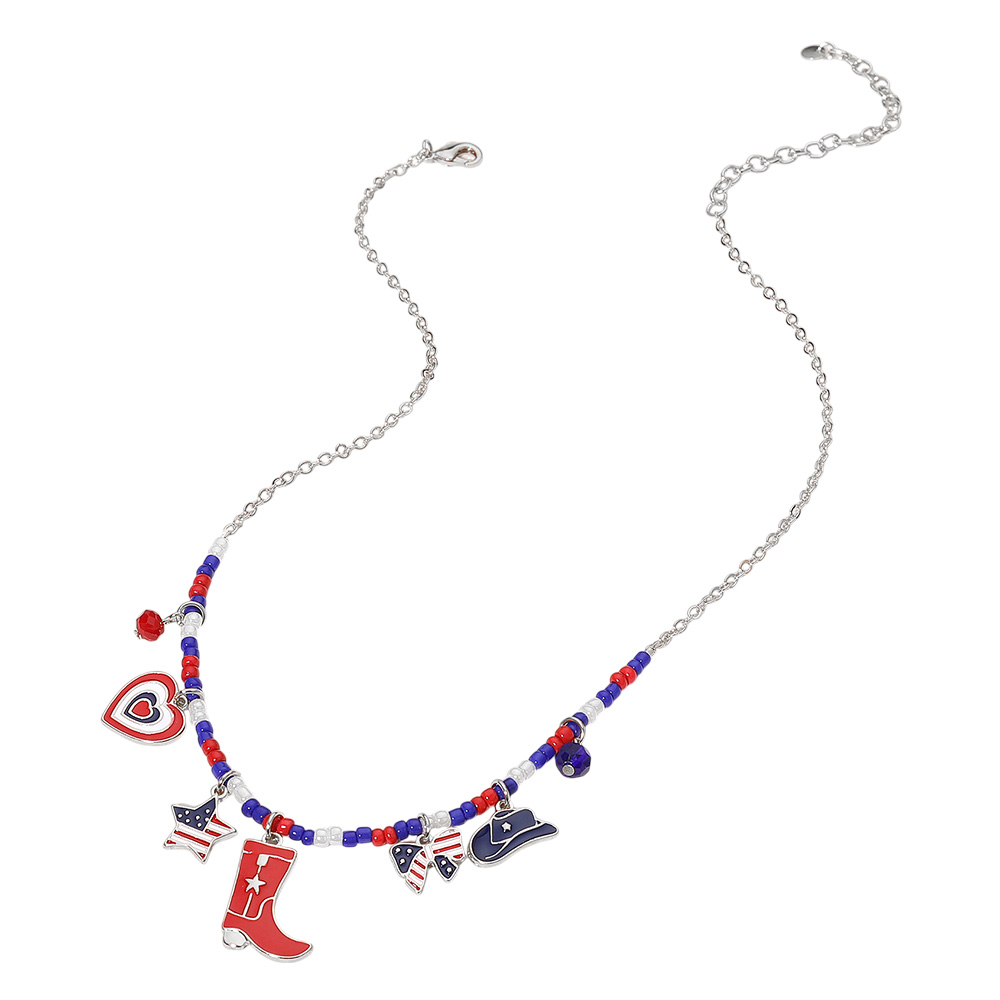 Enamel American USA Flag Western Boot Hat Bow Star Heart Charm Beaded Necklace