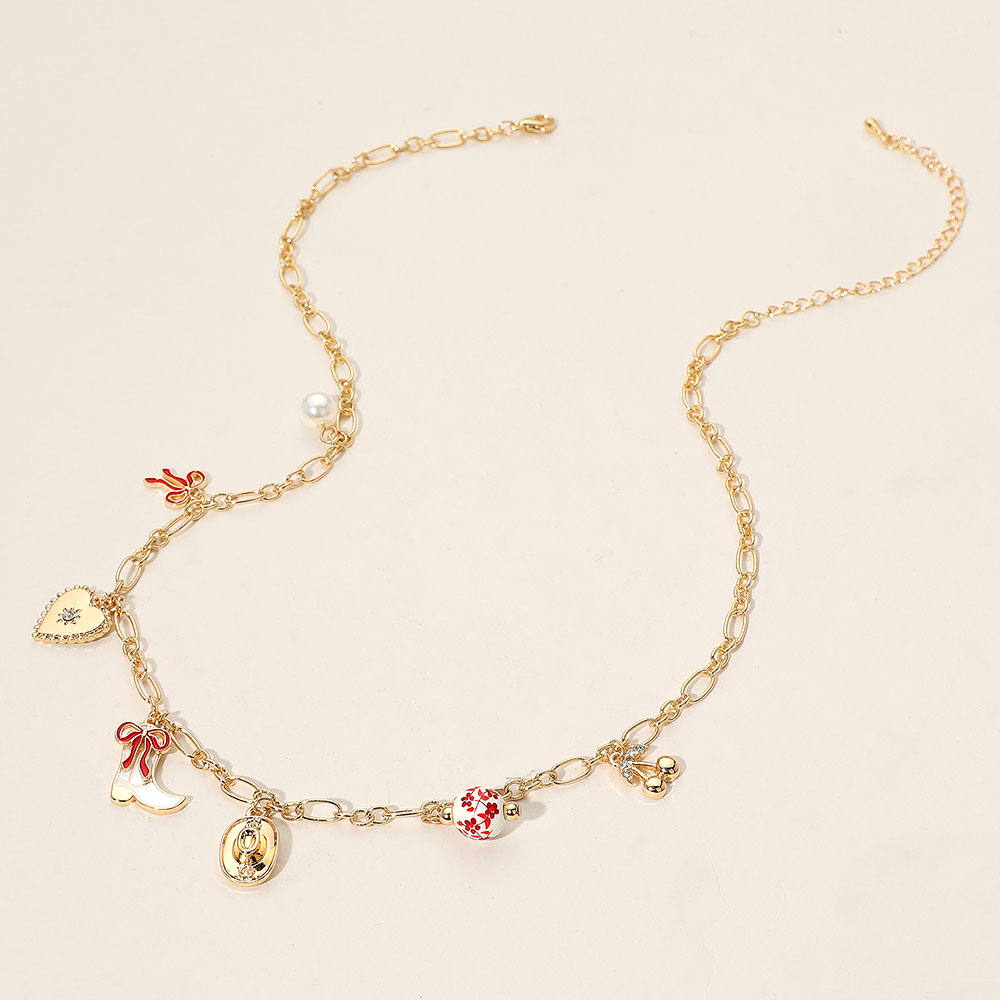 Enamel Bow Western Cowboy Boot Hat Heart Ceramic Ball Pearl Cherry Charm Station Necklace