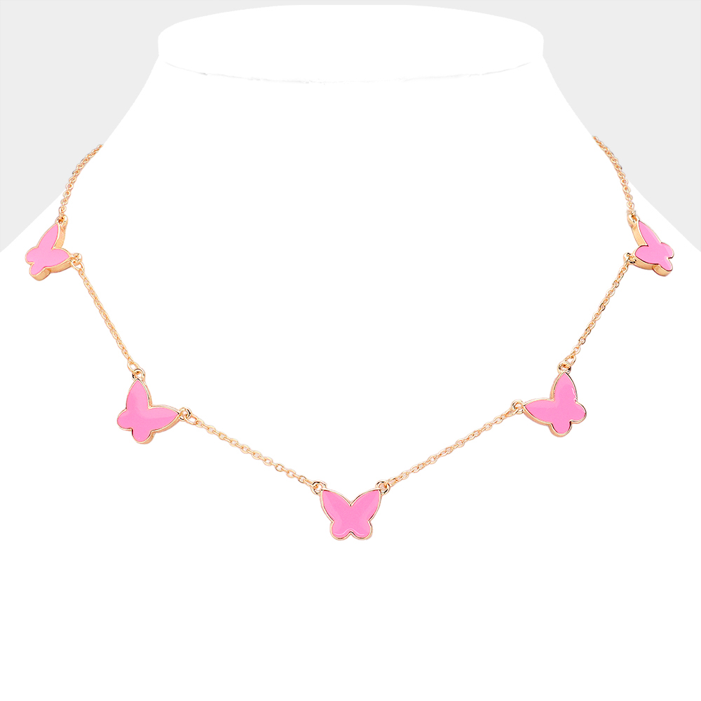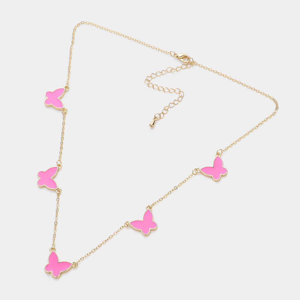 Enamel Butterfly Station Necklace