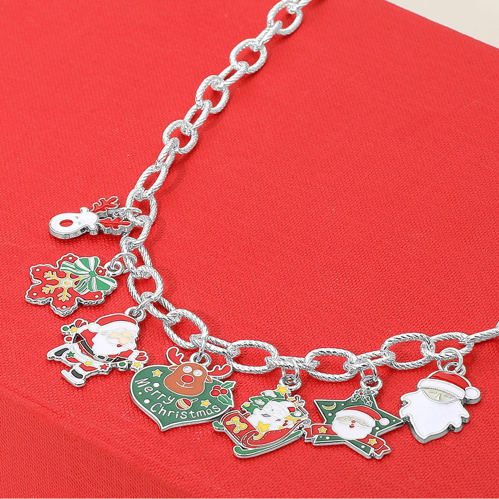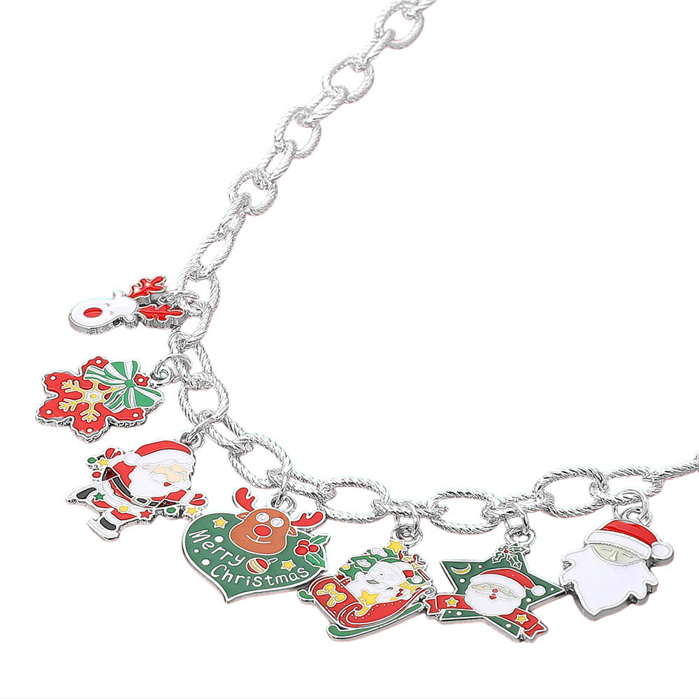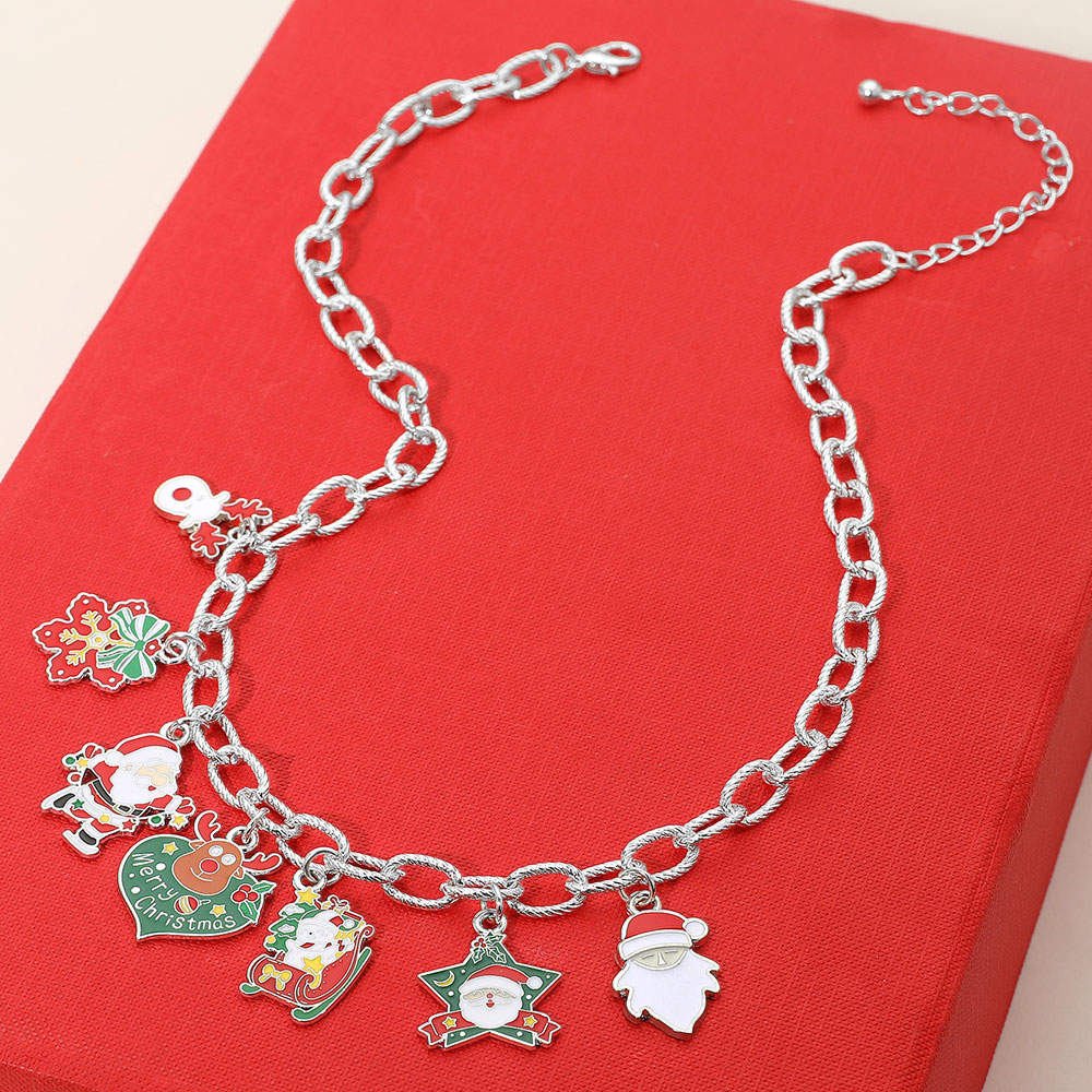 Details • Necklace Size : 16" + 3" L • Decor Size : 1" L • Celebrate the festive season with this Christmas charm necklace, featuring Santa, reindeer, snowman, and holiday-themed pendants. A cheerful accessory perfect for parties, gifts, or seasonal outfits. • Lead and Nickel Compliant