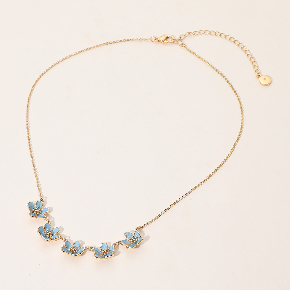 Details • Necklace Size : 16" + 3" L • Decor Size : 0.4" L • Elevate everyday style with the Floral Charm Station Necklace, featuring a series of delicate blossom accents set along a fine chain for graceful movement and subtle sparkle. Perfect for layering or wearing solo as a feminine statement piece. • Brass • Lead and Nickel Compliant