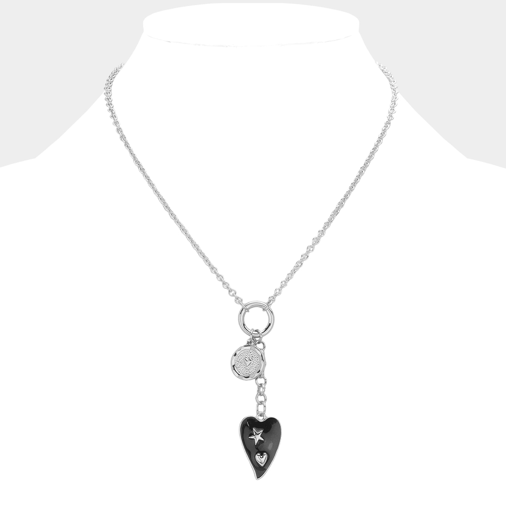 Enamel Heart Disc Charm Pointed Necklace