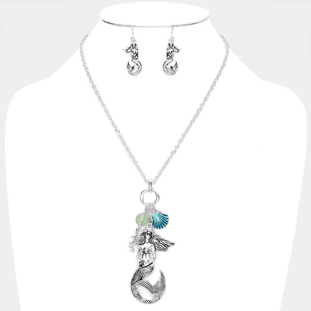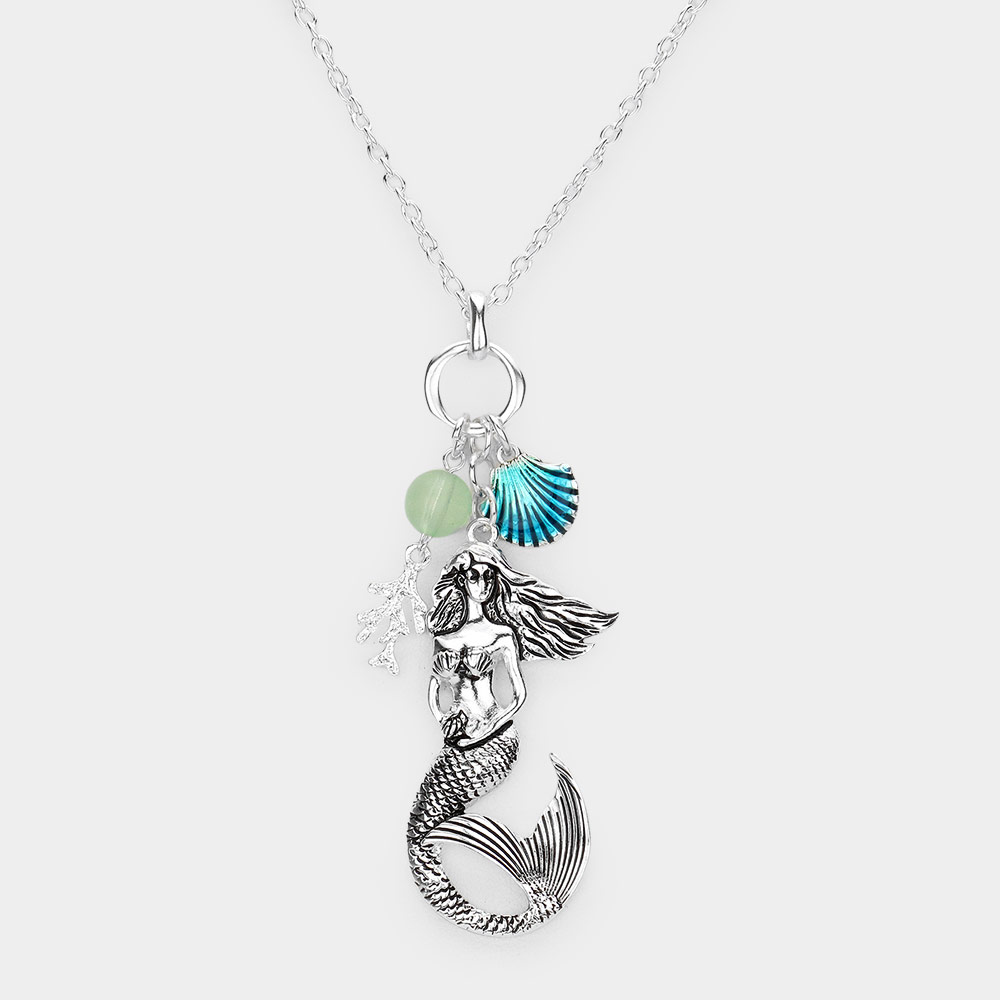 Enamel Shell Metal Mermaid Coral Pendant Necklace